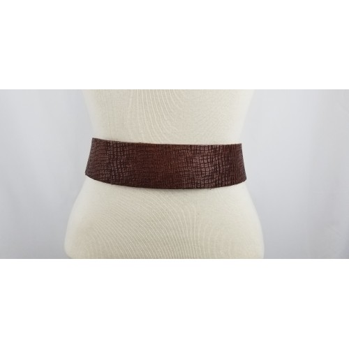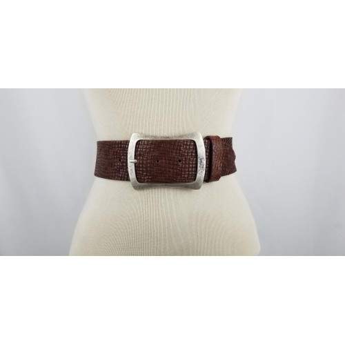 BERGAMO - Women's Croc Style Italian Leather Belt with Matte Silver Rectangle Buckle | SKU 507/60