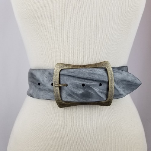 MODICA - Women's Wide Textured Italian Leather Belt with Rectangular Bronze Buckle|SKU F72039